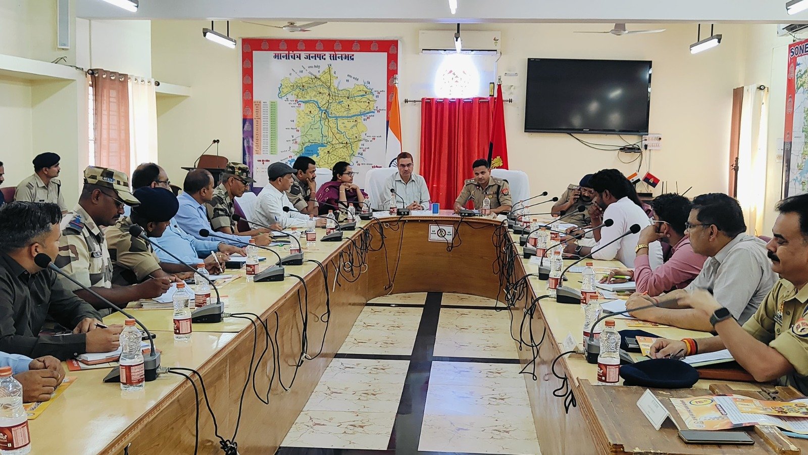 कल होने वाले मॉक ड्रिल को लेकर DM सोनभद्र व SP सोनभद्र ने की बैठक।