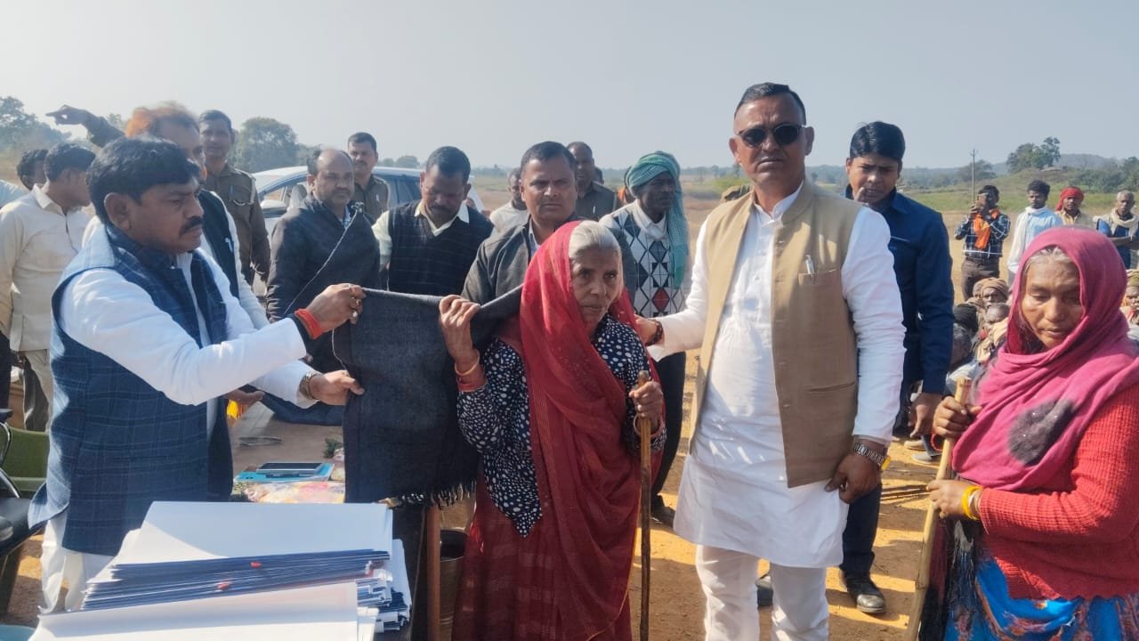 भाट के दुरूह क्षेत्र पाटी में मंत्री के हाथों गरीबों,असहाय,निर्धनों आदिवासी बनवासी को दिया कंबल