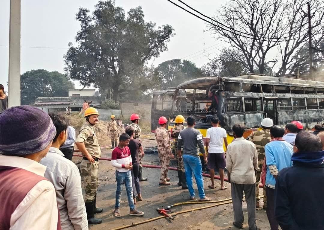 दो बसों में आग लगी, वर्कशॉप में खड़ी थीं बसें, ग्रामीणों ने घंटों बाद पाया काबू