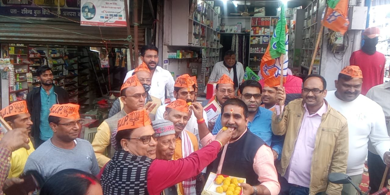 बिहार चुनाव में प्रचंड जीत की खुशी अनपरा भाजपा कार्यकर्ताओं ने मनाया जश्न।
