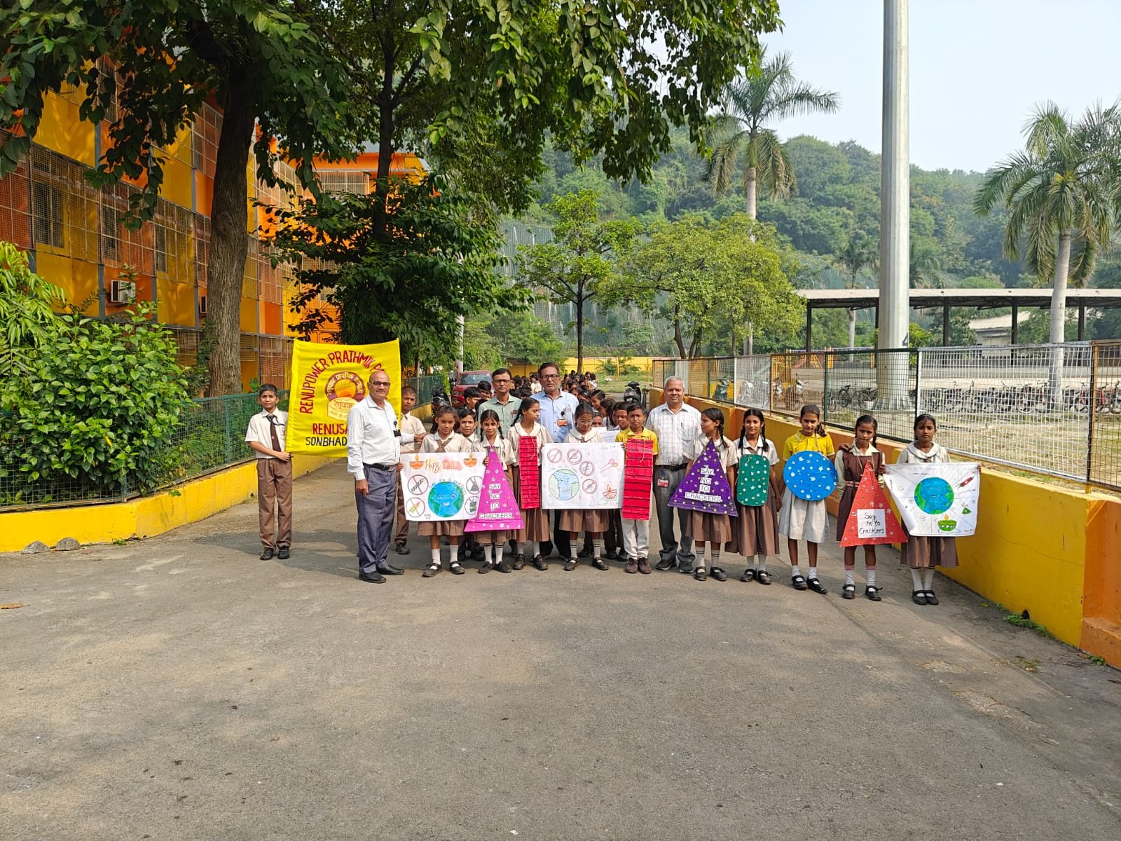 रेनूपावर प्राथमिक पाठशाला, रेनुसागर द्वारा “पटाखे बंद करो प्रदूषण कम करो” जागरूकता रैली निकाली