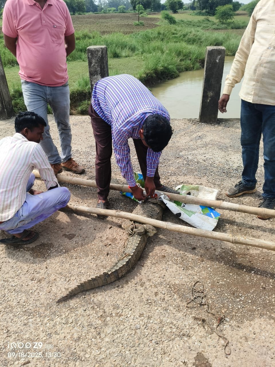Sonbhadra News:निजी तालाब में 4 फीट लंबा मगरमच्छ मिला