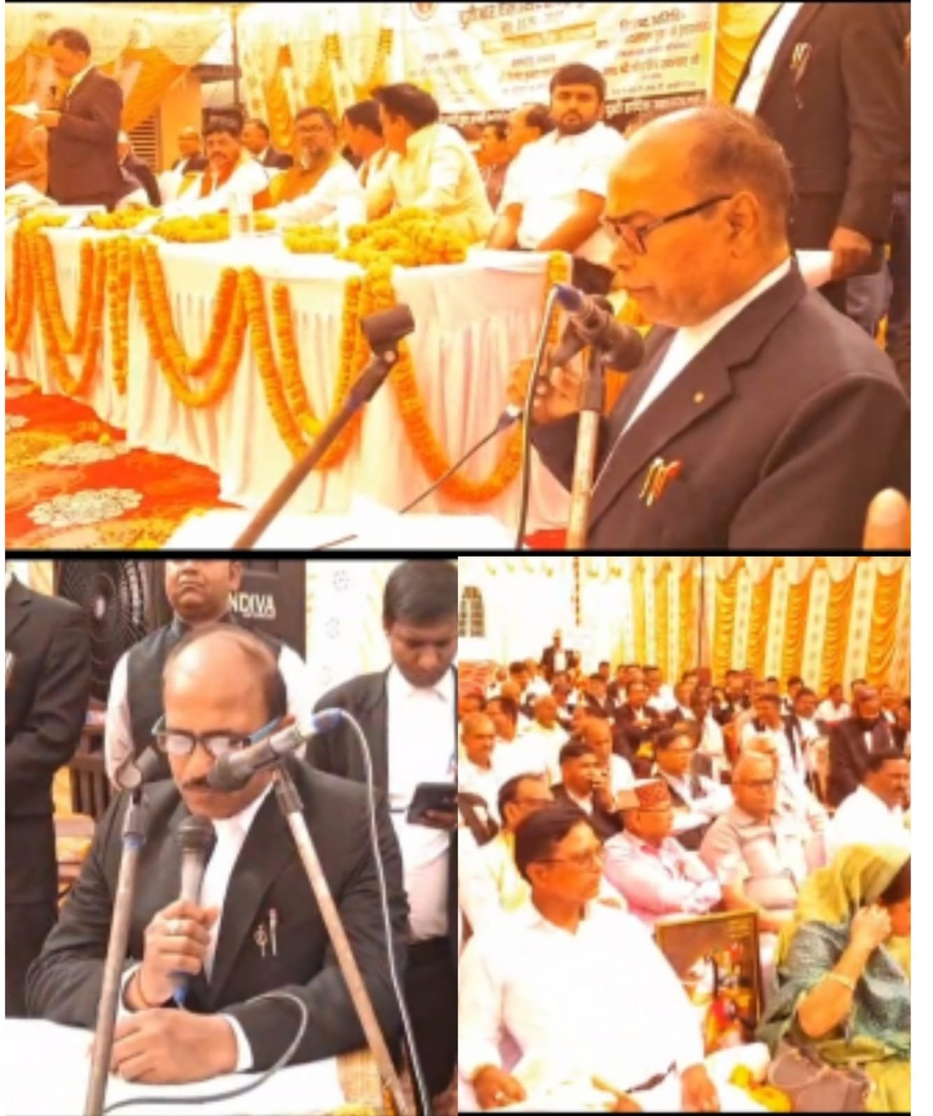 शपथ ग्रहण समारोह को सम्बोधित करते हुए समारोह अध्यक्ष विनोद पांडेय ने कहा कि आज व्यवस्थापिका, कार्यपालिका और न्यायपालिका तीनो अधिवक्ताओं के पीछे पड़ी हैं।उन्होंने कहा कि देश एवं प्रदेश की सदन में अधिवक्ता समाज की आवाज उठाने वाला कोई नही है, इसलिए कोई ऐसा क़ानून बने कि अधिवक्ता का भी प्रतिनिधि देश एवं प्रदेश की सदन मे की जा सके।अधिवक्ता प्रोटेक्शन एक्ट, नये जूनियर अधिवक्ताओं के लिए स्टाइपेंड आदि सुविधाएं दिए जाने की लड़ाई सरकार से लड़ रही है। अन्य अतिथियों ने नई कार्यकारिणी को बधाई दी और कहा कि संगठन के लिए यह गौरव का क्षण है। उन्होंने वादकारी हित मे बार एवं बेंच को सामंजस्य स्थापित कर लोगों को न्याय दिलाने की अपील की।