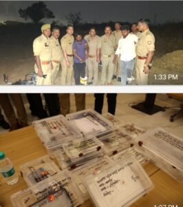 • 02 अदद अवैध तमंचा, 02 अदद जिंदा कारतूस व 02 अदद खोखा कारतूस।