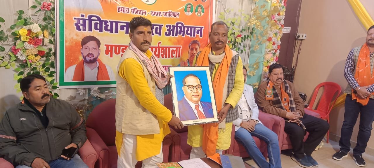 सलखन सोनभद्र।गुरूवार के दिन नगर पंचायत चोपन के श्याम लॉज में भारतीय जनता पार्टी के तत्वाधान में चोपन मंडल की पहली बैठक सम्पन्न हुयी जिसकी अध्यक्षता नव नियुक्त चोपन मंडल अध्यक्ष संजय केशरी ने की।जिसमे संविधान गौरव अभियान का आयोजन किया गया जिसमें मुख्य अतिथि के रूप में जनजाति मोर्चा के जिला अध्यक्ष अमरेश चेरो एवं विशिष्ट अतिथि के रूप में चोपन मंडल के जिला प्रतिनिधि सुनील सिंह एवं मंडल महामंत्री विकास चौबे, प्रदीप जायसवाल, राम प्रताप साहनी जी रामदुलारे खरवार जी बुधीराम बैसवार जी अरविंद मिश्रा जी राम प्रताप गुर्जर जी सत्य केसरी रामबली विजय बैसवार सोनू सिंह धर्मेन्द्र जैन, राजन जायसवाल रामलाल अगरिया ,महिला मोर्चा मंडल अध्यक्ष शबनम मिश्रा,सोनी रावत, जिला कार्य समिति सदस्य धर्मशिला आदी भारी संख्या भाजपा कार्यकर्ताओ उपस्थित रहे।