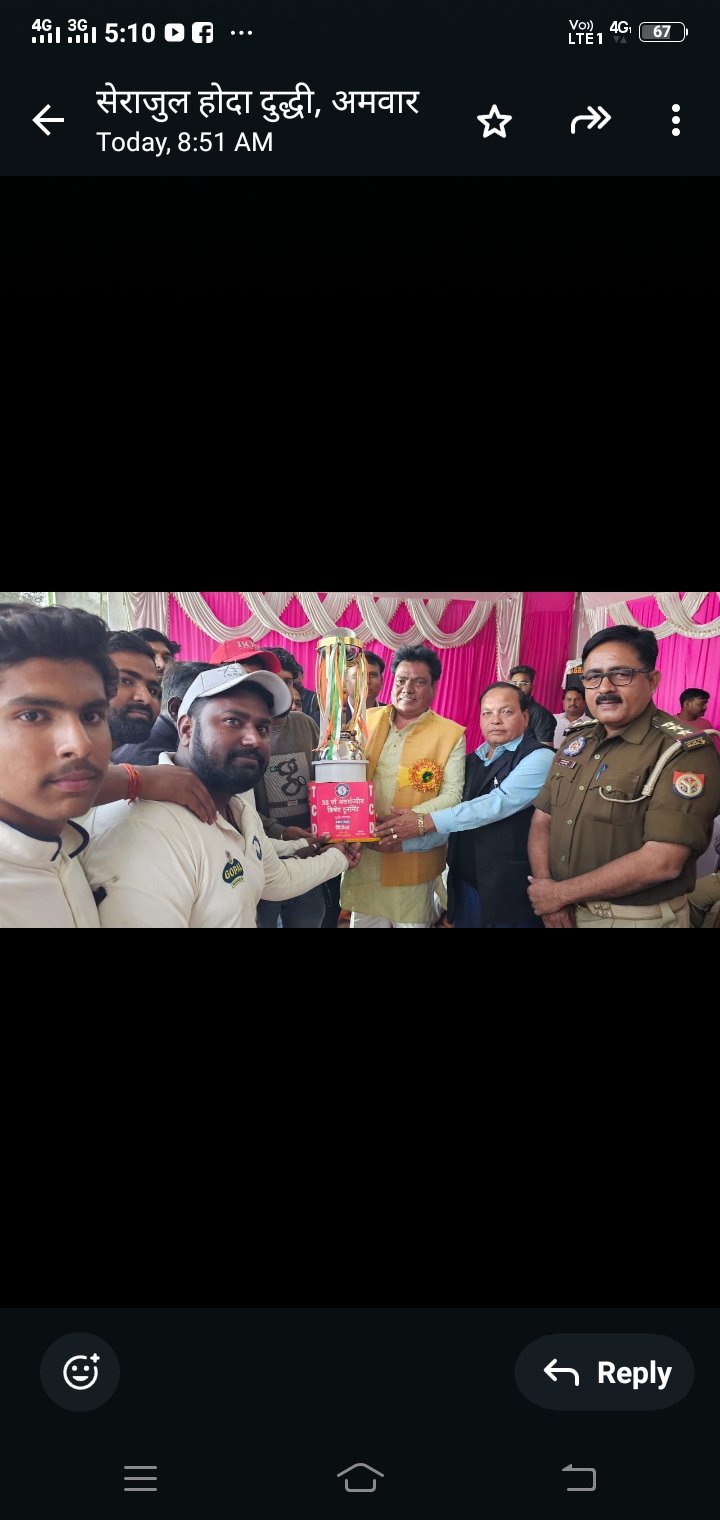 सेराजूल होदा, दुद्धी / सोनभद्र। 38वें अंतरराज्यीय क्रिकेट टूर्नामेंट के फाइनल मुकाबले में दुद्धी की टीम ने चोपन की टीम को 6 विकेट से पराजित कर चैंपियन स्पर्धा का ट्राफी अपने नाम कर लिया।
