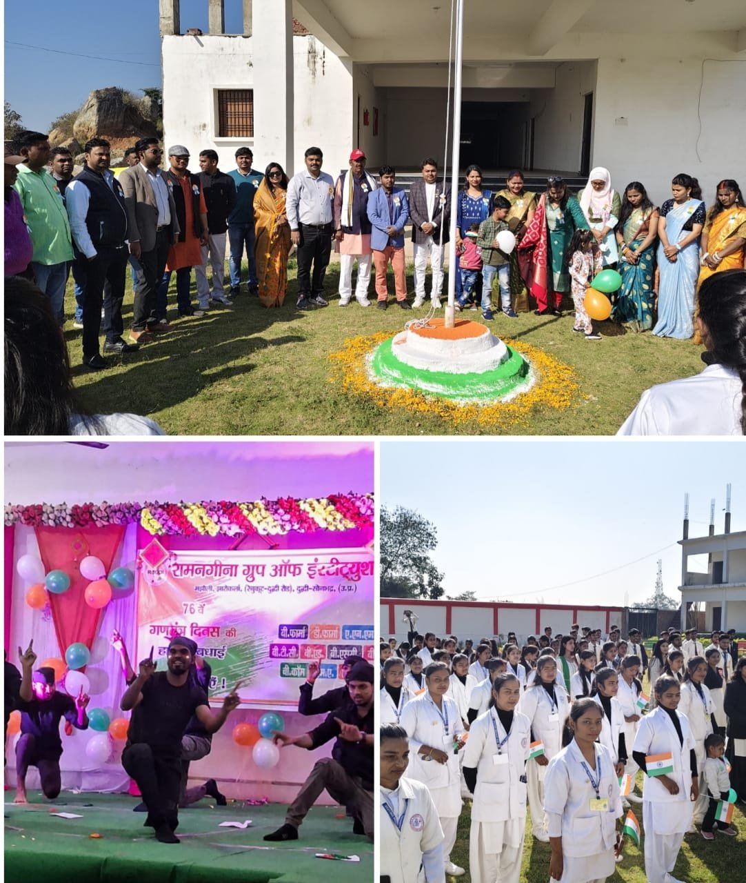 दुद्धी /सोनभद्र। दुद्धी -रेनुकूट मार्ग पर मझौली ग्राम मे स्थित रामनगीना फार्मेसी कॉलेज आफ ग्रुप मे आज रविवार को 76वां गणतंत्र दिवस बड़े ही धूमधाम से मनाया गया | जिसमे कॉलेज के छात्र/ छात्राओं ने प्रभात फेरी का जुलूस निकाला , जो संस्था के कैंपस से निकलकर मझौली, गोपी मोड़़ , झारोकला होते हुए वापस कालेज प्रांगण मे आया | दौरान पूरा क्षेत्र छात्र/ छात्राओं द्वारा लगाए गए देशभक्ति के नारों से गूंज उठा | आपको बता दें कि राम नगीना फार्मेसी कॉलेज आफ ग्रुप के छात्र / छात्राओं ,के द्वारा निकाले गए प्रभात फेरी के जुलूस एवं सांस्कृतिक कार्यक्रम को देखकर आसपास के ग्रामीण लोग भी देशभक्ति के रंग मे सराबोर हो गए | कार्यक्रम के मुख्य अतिथि पुर्व प्रधान मोतीलाल गुप्ता ने ध्वज फहराया और वहां मौजूद अध्यापक गण एवं छात्र-छात्राओं के साथ राष्ट्रगान गाकर तिरंगे झंडे को सलामी दिया | इसके उपरांत कॉलेज के छात्रों ने देशभक्ति से ओत परोत सांस्कृतिक कार्यक्रम प्रस्तुत कर वहां मौजूद सभी लोगों के देश भक्ति के रंग को ताजा कर दिया | कार्यक्रम मे मौजूद मुख्य अतिथि अतिथि द्वारा लोगों को संबोधित करते हुए 26 जनवरी गणतंत्र दिवस के महत्व को समझाया और कहा की आज ही के दिन हमारे देश का संविधान लागू किया गया था , जो सभी नागरिकों को संवैधानिक अधिकार प्रदान करता है | कार्यक्रम का संचालन उपेंद्र कुमार यादव ने किया | इस दौरान कॉलेज के समस्त अध्यापक गण एवं छात्र/ छात्राओं सहित काफी संख्या मे ग्रामवासी मौजूद रहे |