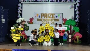 । तदुपरांत विद्यालय के नन्हे मुन्ने बच्चों की मधुर स्वर लहरी में स्वागत गीत प्रस्तुत किया गया ।इसी क्रम में विद्यालय के बच्चों द्वारा अंग्रेजी में लघु नाटिका एवं फेयरी डांस प्रस्तुत किया गया ।रंगारंग कार्यक्रम के उपरांत मुख्य अतिथि श्री आरपी सिंह जी , दिशिता महिला मंडल की अध्यक्षा श्रीमती इंदू सिंह जी एवं श्रीमती रीना जैन के कर कमलों द्वारा संयुक्त रूप से प्रतिभावान छात्र छात्राओं को पुरस्कृत किया गया ।पुरस्कार प्राप्त छात्र-छात्राओं का क्रम निम्नवत् रहा –