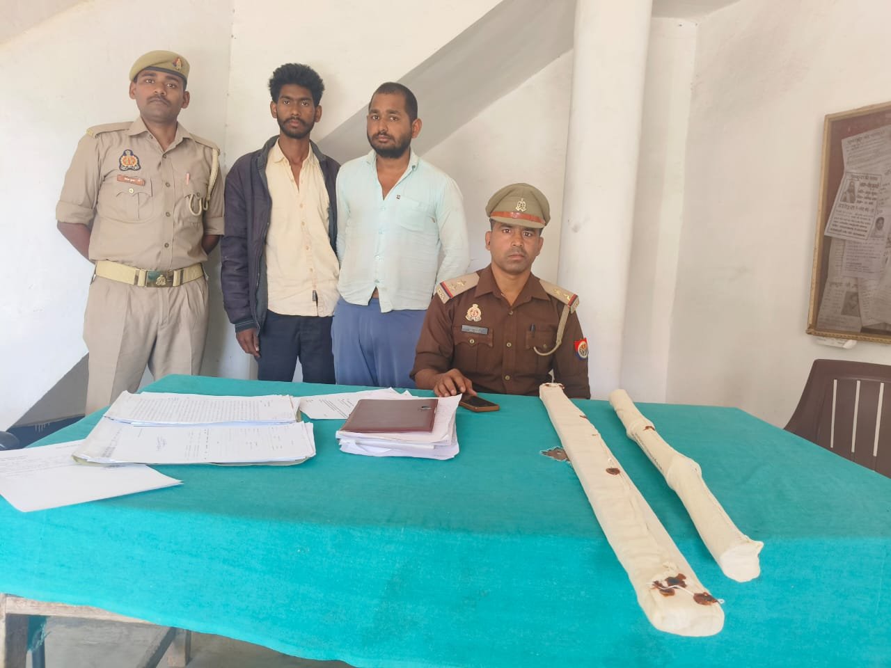 अभियुक्तगण के कब्जे से घटना में प्रयुक्त एक अदद बांस का डण्डा व एक अदद लकड़ी की पटरी बरामद।