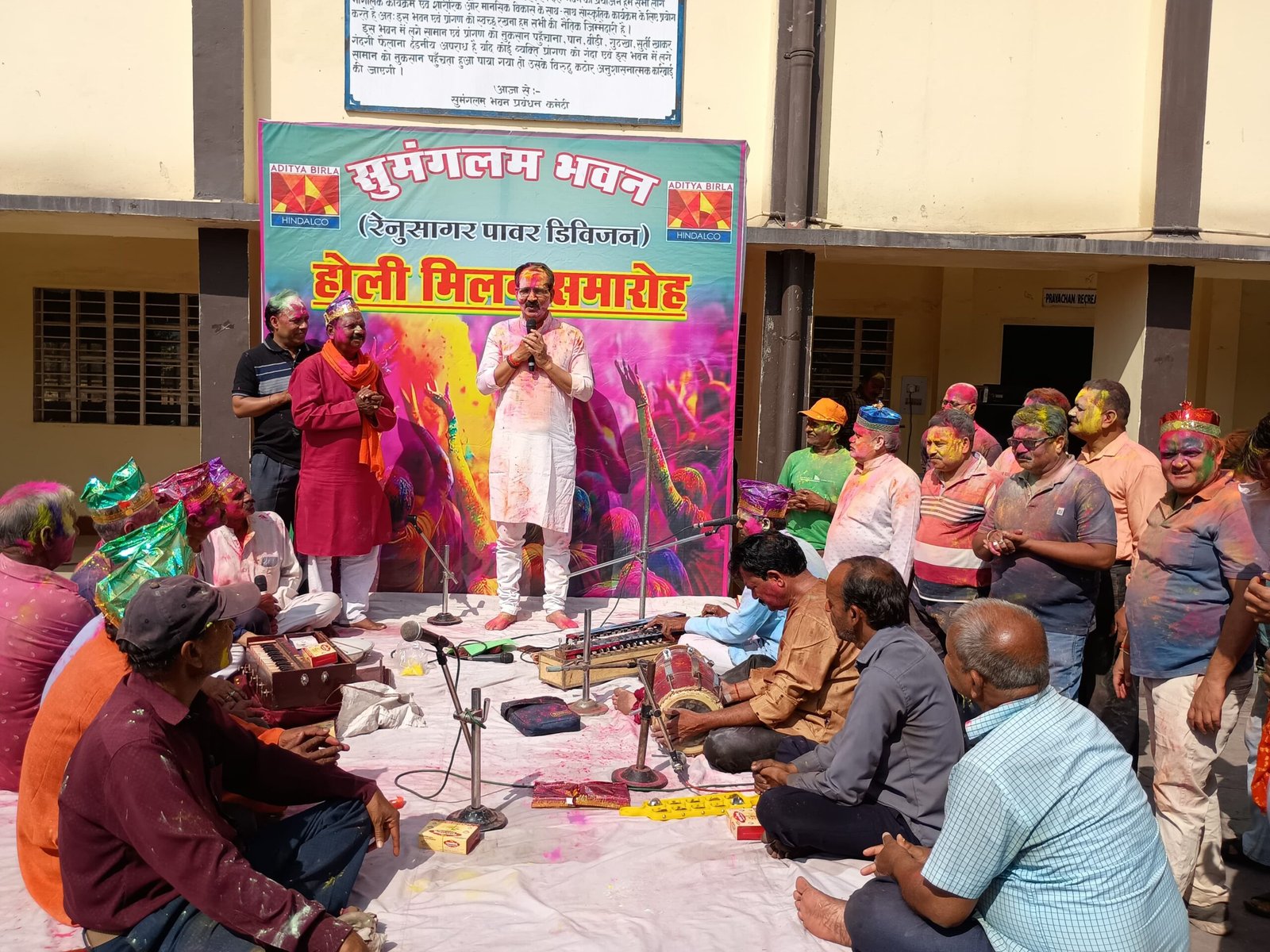 अनपरा सोनभद्र।होली के दिन हिण्डालको रेनुसागर के प्रेक्षागृह स्थित फीनिक्स क्लब द्वारा आयोजित होली मिलन समारोह का भव्य आयोजन किया गया। समारोह शुभारम्भ के पूर्व क्लब के सचिव सुधाकर अन्नामलाई द्वारा मुख्य अतिथि हिण्डालको रेनुसागर के यूनिट हेड आरपी सिंह एवं सभी आगन्तुकों का स्वागत किया। मुख्य अतिथि ने होली की शुभकामनाएं देते हुए कहा कि होली मिलन समारोह के बहाने हम सभी लोग आज यहां उपस्थित हुए हैं। हम सभी को ऐसे कार्यक्रम से यह सीख लेनी चाहिए कि जिस प्रकार हम सभी ऐसे पर्व को मिलजुलकर मनाने के बहाने आपसी सौहार्द एवं प्रेमभाव से पहुंचते हैं। इसी तरह जीवन में भी एक दूसरे के साथ भाईचारे की भावना को और अधिक मजबूत बनाते हुए परस्पर एक दूसरे को अबीर गुलाल लगाकर खुशियों का इजहार करें। इस अवसर पर कमोवेश सभी विभागाध्यक्षों एवं सहकर्मियों ने भी एक दूसरे को अबीर गुलाल लगाकर होली खेली तथा ढोल मजीरे की थाप पर होली के दिवानों,मस्तानों ने फाग गीत गाकर खूब थिरके व क्लब द्वारा आयोजित ठंडई इमरती,दही बड़ा,छोला व गोझिया का लुत्फ उठाया तथा एक दूसरे को अबीर लगाकर होली की बधाई दी। वही सुमंगलम भवन में भी बड़े धूमधाम से होली मिलन कार्यक्रम आयोजित किया गया।कार्यक्रम का संचालन मान्यता प्राप्त श्रम संगठन के पदाधिकारी विजय झा ने किया। इस अवसर पर ,मनीष जैन , नवींद्र पाठक दीपक पांडेय,विभु पात्रा,मनीष सिंह,अरविंद सिंह,सौम्या मिश्रा, रोहित सक्सेना,सदानन्द पांडेय,आर के बर्मा,संजीव श्रीवास्तव आदि के अलावा सभी बिभागाघ्यक्ष मौजूद थे।