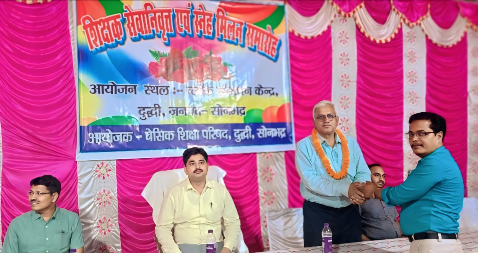 दुद्धी / सोनभद्र। दुद्धी बीआरसी मे सेवानिवृत हो रहे दो वरिष्ठ शिक्षकों का बिदाई समारोह भावुक पलों के बीच मनाया गया । सेवानिवृत हो रहे प्रधानाध्यापक मो सलीमुल्लाह(यूपीएस डुमरडीहा मध्य),मो यामीन ( प्रा वि पतेरी खोली)ने बारी बारी से ब्लॉक दुद्धी मे बिताए अपने यादगार संस्मरण सुनाए।उन्होंने कहा कि दुद्धी हमेशा उनके यादों मे रहेगा,यहां से जो प्यार व सम्मान मिला व अविस्मरणीय रहेगा।मुख्य अतिथि बीएसए सोनभद्र मुकुल आनंद पाण्डेय ने कहा कि शिक्षक ही ऐसा पद है जिसे राष्ट्र निर्माता का दर्जा मिला है अर्थात आप छोटे छोटे बच्चों के व्यक्तित्व का जैसा निर्माण करते हैं वैसा ही देश का भविष्य बनता है। बीईओ महेंद्र मौर्या ने कहा कि दोनों ही वरिष्ठ शिक्षक कर्मठ व स्वच्छ छवि वाले हैं।आगामी जीवन के लिए हार्दिक एवं शुभकामनाएं।विशिष्ट अतिथि बीईओ कोन व करमा ने भी शिक्षकों को संबोधित किया।वरिष्ठ शिक्षक शैलेश मोहन ने दोनों ही वरिष्ठ साथियों को विदाई देते हुए विदा हो रहे साथियो से सम्बंधित अपने संस्मरण भी सुनाए।उन्होंनेआगामी जीवन के लिए शुभेच्छा व्यक्त की। वरिष्ठ शिक्षक सदानंद मिश्र ने सबको धन्यवाद ज्ञापित करते हुए कहा कि वरिष्ठ शिक्षकों का सम्मान करना हम सबके लिए नैतिक कर्तव्य है। कार्यक्रम का संचालन जितेंद्र चौबे, अविनाश गुप्ता ने संयुक्त रूप से किया।इस अवसर पर सुनील पांडेय,जितेंद् चौबे,भोलानाथ,सर्वेश त्रिपाठी, मुसईराम,प्रवीण द्विवेदी, विरेंद्र बहादुर, मो आजम,राकेश शर्मा,विजय गुप्ता,बिहारी लाल,वरुण यादव,गौरव चौधरी,राजेश झा, लल्लूराम,उज्ज्वल मौर्य,बलवंत सिंह,बृजेश मौर्य, बृजकुमारी सिंह शिक्षा विभाग के अन्य कर्मचारी मौजूद रहें ।