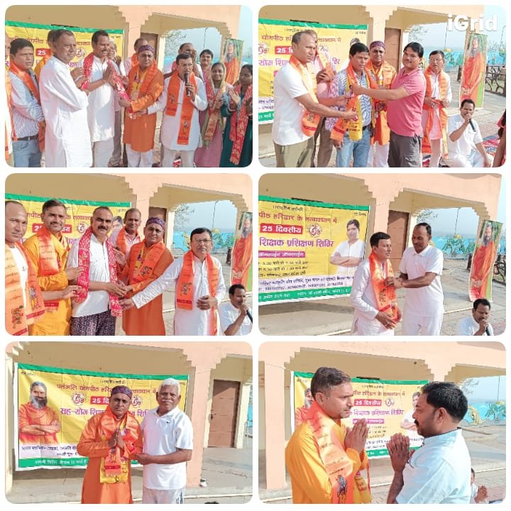 पतंजलि परिवार के पदाधिकारीयों द्वारा 25 दिवसीय योग शिविर के सूत्रधार भारत स्वाभिमान जिला कोषाध्यक्ष जितेंद्र कुमार सिंह व उपस्थित सभी योग प्रशिक्षुओं को अंग वस्त्र से सम्मानित किया गया।