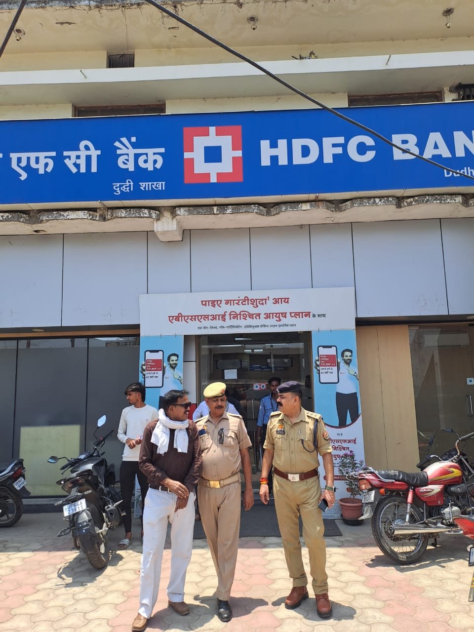 आज तीन दिनों के अवकाश के बाद बैंक खुलने के कारण उच्चधिकारियो के निर्देश पर क़स्बा रेणुकूट में डिप्टी एस पी पिपरी अमित कुमार के द्वारा पुलिस फ़ोर्स के साथ बैंक ऑफ़ बड़ोदा, सेंट्रल बैंक ऑफ़ इंडिया, स्टेट बैंक ऑफ़ इंडिया, युको बैंक, hdfc बैंक व एटीएम एवम वहाँ लगे सी सी टी वी कैमरों को चेक किया गया.