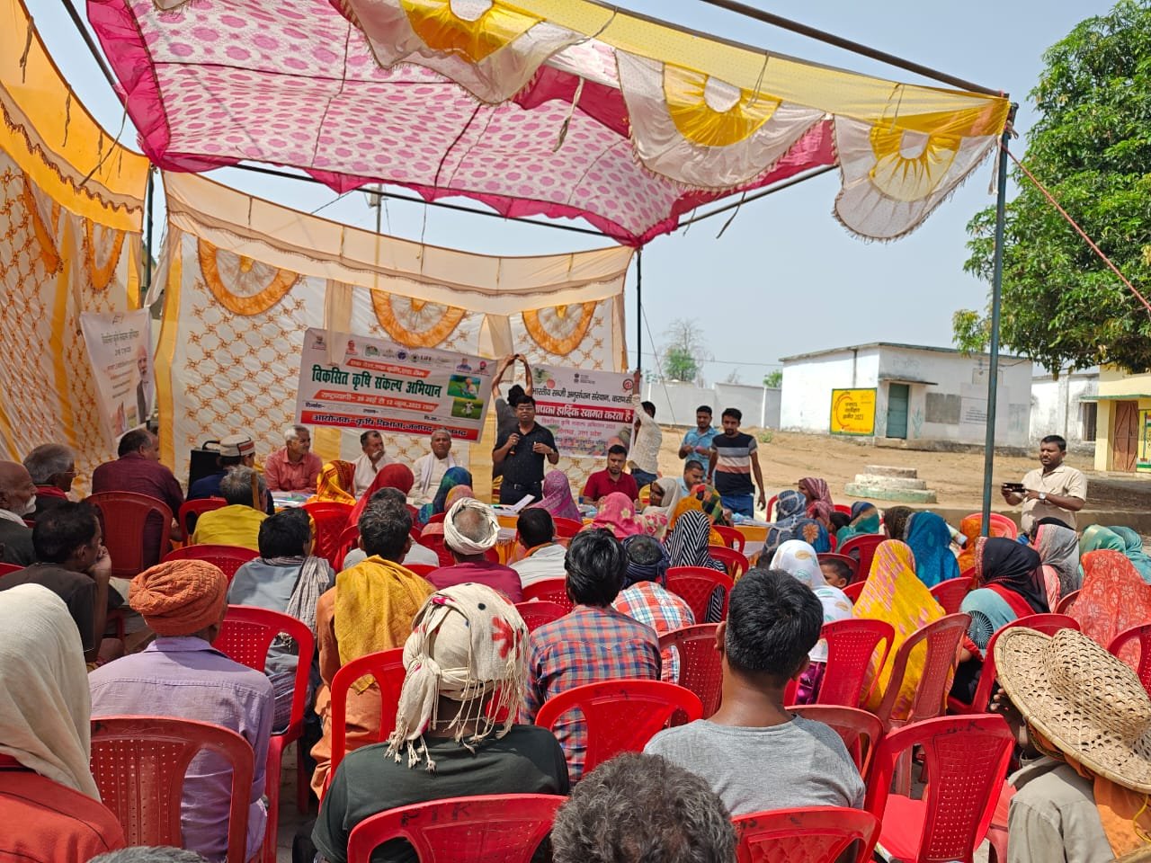 चोपन/ सोनभद्र। आज दिनांक 1 जून को सोनभद्र जिले के चोपन ब्लॉक में अवस्थित ग्राम सेमिया एवं घोरिया में विकसित कृषि संकल्प अभियान का आयोजन किया गया। इस कार्यक्रम में भारतीय सब्जी अनुसंधान संस्थान, वाराणसी के वरिष्ठ वैज्ञानिक डॉ इन्दीवर प्रसाद, डॉ सूजन मजूमदार, कृषि विज्ञान केंद्र के वैज्ञानिक डॉ संजीव राव, भूमि संरक्षण अधिकारी डॉ के के सिंह, तकनीकी सहायक विपिन शर्मा, आशीष पाठक ने बड़ी संख्या में एकत्रित किसानों को सरकार द्वारा चलाई जा रही कृषि योजनाओं एवं नवीन कृषि तकनीकों की जानकारी दी। इस अवसर पर किसानों के खेत मे जाकर खरपतवार प्रबंधन एवं आम के पेड़ में आ रही बीमारी का समाधान किया गया! इस कार्यक्रम में 200 से ज्यादा महिला एवं पुरुष कृषक उपस्थित थे। कल यह कार्यक्रम घोरावल ब्लॉक के कुशहरा, दोहरी एवं ओडट्ठा ग्राम में भी आयोजित किया जाएगा।