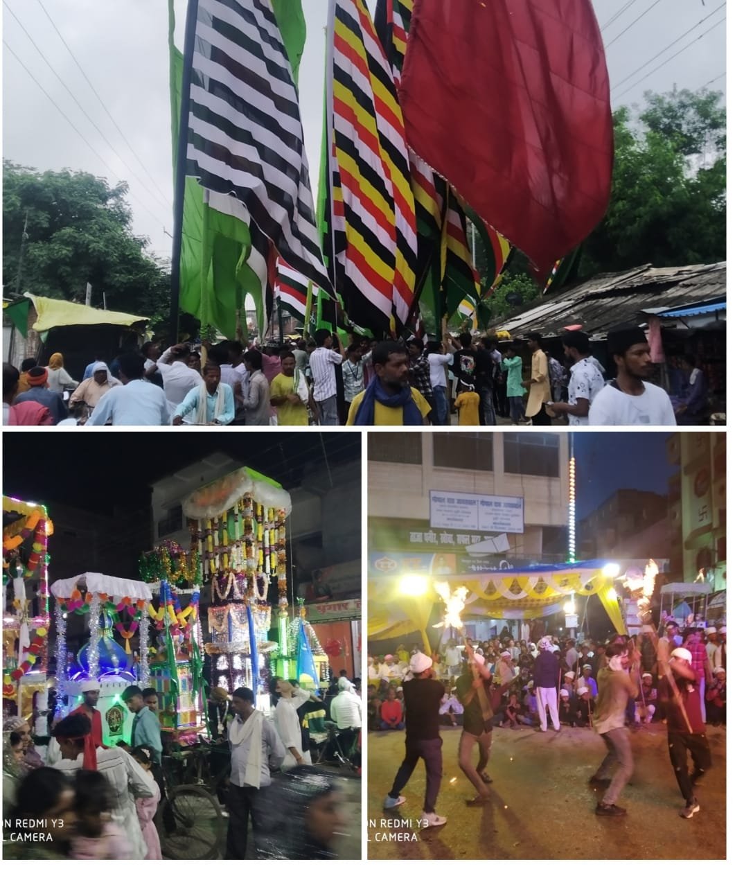 जुलूस में अखाड़े, ताजिये और अलम शामिल थे, जो नगर से लगे आसपास के ग्रामीण अंचलों व कस्बे के विभिन्न वार्डों मोहल्लों जैसे शाह चौक,जुगनू चौक, दर्जी मोहल्ला,मीर मोहल्ला, रामनगर, कलकली बहरा, मल्देवा,खजुरी, डूमरडीहा, कठौतवा आदि जगहों से शामिल हुए थे। जुलूस मे ढोल ताशे की गूंज के बीच लोगों ने “या अली या हुसैन की आवाज बुलंद कीं।