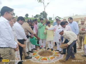 जहां सर्वप्रथम मुख्य अतिथि एवं विशिष्ट अतिथि द्वारा एक एक पेड़ लगाया गया जिसमें औषधीय गुणों से युक्त पौधों जैसे नीम, नीबू, जामुन, सहजन, आम, आंवला, अमरुद, शहतूत, वेल, ओल, अशोक आदि प्रजातियों के पेड़ सम्मिलित वृक्षारोपण किया गया।