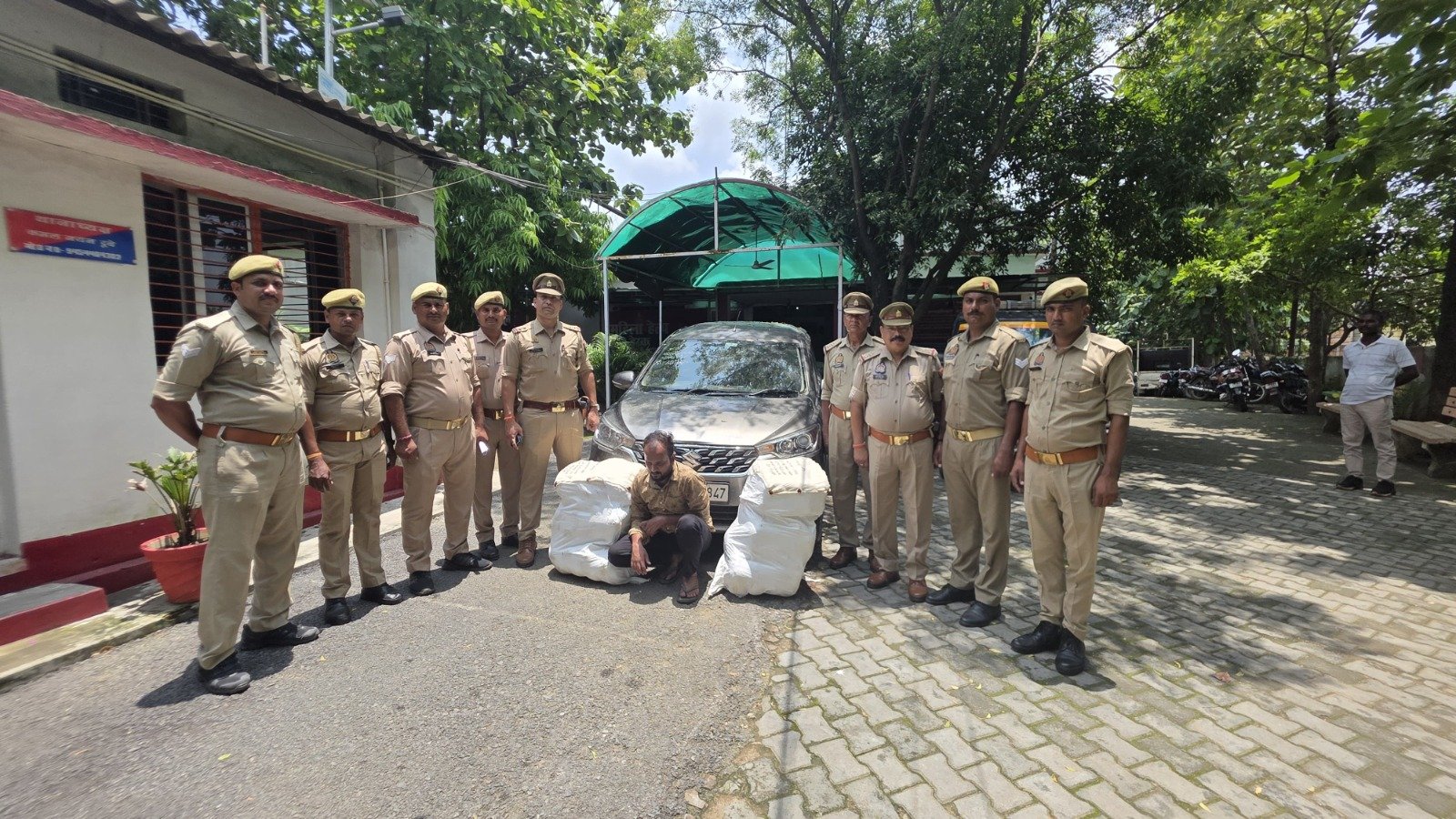 म्योरपुर*सोनभद्र पुलिस का अनवरत प्रहार, थाना म्योरपुर पुलिस ने मादक पदार्थों की तस्करी करने वाले 01 अन्तर्जनपदीय गांजा तस्कर को किया गिरफ्तार, एक अर्टिगा कार से कुल 71 किलो 270 ग्राम मादक पदार्थ गांजा (अनुमानित कीमत 15 लाख रुपये) बरामद-*पुलिस अधीक्षक सोनभद्र, श्री अशोक कुमार मीणा के निर्देशन में अवैध मादक पदार्थों की तस्करी करने वाले तस्करों के विरुद्ध सोनभद्र पुलिस के निरन्तर प्रहार की कड़ी में अपर पुलिस अधीक्षक (ऑपरेशन) श्री त्रिभुवन नाथ त्रिपाठी व क्षेत्राधिकारी दुद्धी श्री राजेश कुमार राय के पर्यवेक्षण में दिनांक 18.07.2025 को थानाध्यक्ष म्योरपुर को मुखबिर से सूचना मिली कि बभनडीहा के जंगल में एक संदिग्ध गाड़ी खड़ी है। उक्त सूचना पर थानाध्यक्ष म्योरपुर मय टीम मौके पर जाकर संदिग्ध आर्टिका वाहन संख्या OD 23 N 0847 को चेक किया गया। वाहन की तलाशी लेने पर दो बोरियों में कुल 24 पैकेटों में 71.270 किलोग्राम नाजायज गांजा ( अनुमानित कीमत 15 लाख रुपये) बरामद हुआ। मौके से एक अभियुक्त राजा सिंह उर्फ किशन सिंह पुत्र स्वर्गीय मनोज सिंह निवासी सहतवार, थाना सहतवार, जनपद बलिया को गिरफ्तार किया गया है। इस मामले में दो अन्य व्यक्ति मौके से फरार हो गए, जिनके नाम शैलेश कुमार शाह पुत्र राजू लाल शाह, निवासी बड़माल, झारसुगुड़ा (उड़ीसा) एवं समीर शाह पुत्र अज्ञात, निवासी बड़माल, झारसुगुड़ा (उड़ीसा) है । इसके अतिरिक्त, नाजायज गांजा आपूर्ति से जुड़े दो व्यक्तियों भक्त चरण राणा उर्फ राजू पुत्र अज्ञात, निवासी पंचपाड़ा, थाना टाउन थाना, झारसुगुड़ा उड़ीसा (गांजा बेचने वाला) तथा राजेश सोनकर पुत्र अज्ञात, निवासी कोखराज, थाना कोखराज, जनपद कौशांबी (गांजा खरीदने वाला) की तलाश की जा रही है । इस बरामदगी व गिरफ्तारी के सम्बन्ध में थाना म्योरपुर पर मु0अ0सं0-89 /2025 धारा 8/20/27ए/29/60 NDPS Act का अभियोग पंजीकृत कर अग्रेतर विधिक कार्यवाही की जा रही है।