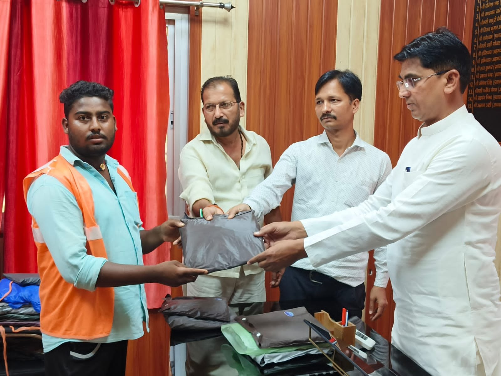 चोपन/सोनभद्र। बरसात के इस भीगते मौसम में जहां आम जनमानस घरों में ठहर जाता है, वहीं नगर की स्वच्छता व्यवस्था को बनाए रखने में नगर पंचायत के सफाई मित्र निरंतर जुटे हुए हैं। नगर में सफाई व्यवस्था को सुदृढ़ बनाए रखने हेतु सफाईकर्मी प्रतिदिन सुबह से ही कार्य में जुट जाते हैं। इसी क्रम में सफाई मित्रों की मेहनत और समर्पण को देखते हुए नगर पंचायत अध्यक्ष उस्मान अली ने एक सराहनीय कदम उठाया। उन्होंने सफाई मित्रों की सुरक्षा एवं स्वास्थ्य का ध्यान रखते हुए रैनकोट वितरित किए, जिससे वे बरसात में भीगने से बचते हुए अपने कार्य को आसानी से कर सकें। इस मौके पर अध्यक्ष उस्मान अली ने कहा कि, सफाई मित्र नगर के असली योद्धा हैं। उनकी सेवा भावना को सलाम करते हुए हमारी जिम्मेदारी बनती है कि हम उनकी सुरक्षा सुनिश्चित करें। रैनकोट वितरण इसी कड़ी का एक प्रयास है। नगर पंचायत द्वारा की गई यह पहल न केवल सफाईकर्मियों का उत्साहवर्धन करती है बल्कि उनके हौसलों को भी बढ़ाती है।