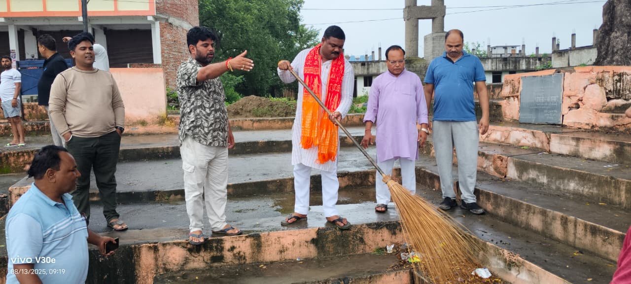 दुद्धी / सोनभद्र। स्थानीय कस्बा स्थित शिवाजी तालाब से भाजपा कार्यकर्ताओं ने स्वतंत्रता दिवस से पूर्व स्वच्छता अभियान की शुरूआत किया। इस अभियान मे भाजपा कार्यकर्ताओं ने नगर पंचायत स्थित शिवाजी तालाब पर पूर्व विधानसभा प्रत्याशी श्रवण सिंह गोंड़ और नगर पंचायत चेयरमैन कमलेश मोहन के नेतृत्व मे स्वच्छता का संदेश दिया। इस दौरान पुर्व विधान सभा प्रत्याशी श्रवण गोंड़ ने मीडिया को बताया कि हर घर तिरंगा अभियान के साथ स्वच्छता का संदेश देना हमारा कर्तव्य है। उन्होंने कहा कि तिरंगा हमारी आन, बान, शान है और स्वच्छता हमारे संस्कार, हमारी सभ्यता और हमारे भविष्य की पहचान है।