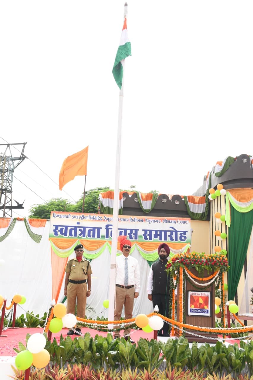 यूनिट हेड ने इस अवसर पर जल संरक्षण पर विशेष ध्यान देते हुए लोगों को जल संरक्षण पर जोर देने के लिए कहा ताकि आने वाला भविष्य सुरक्षित रहे। हर वर्ष की भांति इस वर्ष भी स्वतंत्रता दिवस के अवसर पर महिला मंडल द्वारा प्रकाशित पत्रिका दिशा का विमोचन भी यूनिट हेड ने किया तथा महिला मंडल के कार्यों की सराहना की और आगे भी समाज सेवा में उनको योगदान को देने के लिए कहा। इस अवसर पर दीशिता महिला मंडल की वरिष्ठ सदस्या श्रीमती इंदू सिंह अपने सदस्यों के साथ दिशा विमोचन के अवसर पर मौजूद थी तथा उन्होंने कहा की दीशिता महिला मंडल हमेशा की तरह समाज की सेवा करती रहेगी। स्कूलों के शत प्रतिशत परीक्षा परिणाम तथा उपलब्धियों के लिए तीनों स्कूलों के प्रधानाचार्य को धन्यवाद देते हुए उनकी प्रशंसा की। यूनिट हेड ने समाज कल्याण के प्रति अपनी प्रतिबद्धता को दोहराया तथा रेनूसागर में हो रहे नए निर्माण के बारे में भी बताया। मानव संसाधन प्रमुख शैलेश विक्रम सिंह जी ने भी आए हुए गणमान्य नागरिकों पत्रकारों एवं छात्र-छात्राओं का स्वागत किया तथा कार्यक्रम को सफल बनाने हेतु सभी विभागों को धन्यवाद दिया। स्वतंत्रता दिवस के अवसर पर हेड मेंटेनेंस जगदीश पात्रा,ऑपरेशन हेड मनीष जैन, एच आर के आशीष कुमार पांडे संजय श्रीमाली, संदीप यवाले आशुतोष सिंह, सुधाकर अन्नामलाई, मन्नू अरोड़ा, मनीष सिंह, सतनाम सिंह, अरविंद सिंह, विभु पात्रा ,सुबोध दवे ,ललित खुराना, निखिल जैन, निशा महापात्रा आदि वरिष्ठ अधिकारी गण मौजूद रहे। मान्यता प्राप्त श्रम संगठनों के पदाधिकारी शैलेंद्र यादव, निर्दोष सिंह, रामकुमार झा अपने कार्यकारिणी सदस्यों के साथ मौजूद रहे। कर्मचारी संबंध प्रमुख मृदुल भारद्वाज के नेतृत्व में कार्यक्रम को सफल बनाने में रोहित सक्सेना, रमेश वर्मा, सदानंद पांडे का विशेष योगदान रहा।