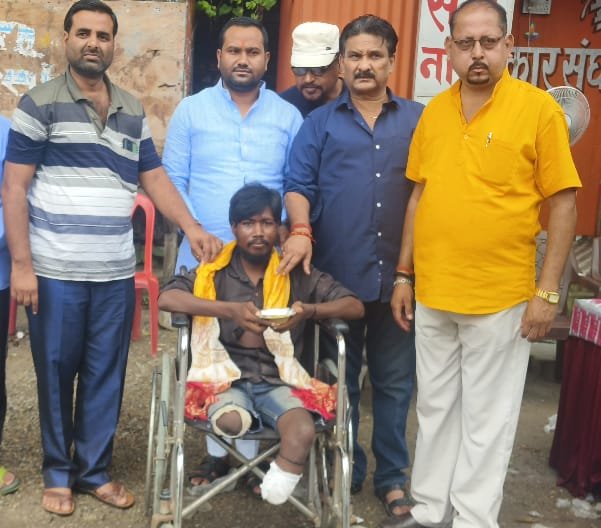 चोपन/सोनभद्र । नर सेवा नारायण सेवा चोपन द्वारा प्रत्येक शनिवार को निःशुल्क खिचड़ी वितरण कार्यक्रम आयोजित किया जाता है। संस्था समय-समय पर समाज के लिए उपयोगी सामाजिक कार्य जैसे कम्बल वितरण आदि भी करती रहती है। इसी क्रम में 93 वें शनिवार को खिचड़ी वितरण कार्यक्रम के पश्चात संस्था ने एक मानवीय पहल करते हुए चोपन सब्ज़ी मंडी में रहने वाले राहुल को सहारा प्रदान किया। ज्ञात हो कि राहुल विगत तीन माह पूर्व एक सड़क दुर्घटना में अपने दोनों पैर गंवा बैठा था, जिसके कारण वह चलने-फिरने में असमर्थ हो गया था। उसकी असहाय स्थिति को देखते हुए नर सेवा नारायण सेवा ने उसके लिए सहयोग का संकल्प लिया। संस्था के परम सहयोगी ऋषि मेडिकल ओबरा के प्रोपराइटर सौरभ गोस्वामी की ओर से अपने पिता स्व अनील गोस्वामी के स्मृति में राहुल को व्हील चेयर प्रदान किया गया। इस अवसर पर संस्था के संयोजक मनोज चौबे ने कहा कि नर सेवा नारायण सेवा से बड़ा कोई कार्य नहीं है समाज के लोगों का भरपूर सहयोग मिल रहा है ऐसे में आने वाले समय में और भी इस प्रकार के सामाजिक कार्य आगे भी निरंतर जारी रहेंगे। इस मौके पर संरक्षक दया सिंह, श्यामाचरण गिरी, सुनील सिंह गोंड़,डा बृजेश सिंह, दिनेश पाण्डेय, अश्वनी सिंह, जित्तू सिंह,विनित शर्मा, रंजीत सिंह, शमशेर अली,आदि मौजूद रहे|