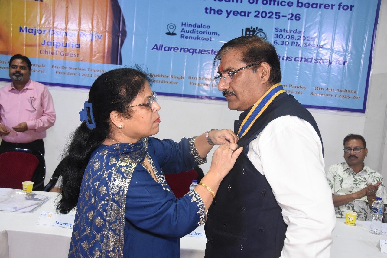 इस अवसर पर सचिव रोटेरियन संजय रूंथला ने वर्ष 2024-25 की रिपोर्ट प्रस्तुत की। तत्पश्चात तत्कालीन अध्यक्षा रोटेरियन डॉ. नीलम त्रिपाठी ने अपने कार्यकाल की उपलब्धियाँ साझा करते हुए सभी सदस्यों का आभार जताया। मुख्य अतिथि की उपस्थिति में उन्होंने रोटेरियन सुनील कांत पांडेय को कॉलर पहनाकर वर्ष 2025-26 के लिए अध्यक्ष पद का दायित्व सौंपाऔर उन्हें शुभकामनाएँ दीं। इसी क्रम में रोटेरियन संजय रूंथला ने पिन पहनाकर रोटेरियन अजित अस्थाना को सचिव पद की जिम्मेदारी दी, वहीं रोटेरियन मुकेश सिंह ने रोटेरियन शशि तिवारी को कोषाध्यक्ष (Treasurer) का दायित्व सौंपा।