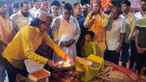 श्री रामलीला मंचन के 60 वें वर्ष के लीला का मुख्य अतिथि जीत सिंह खरवार ने फीता काटकर शुभारंभ किया ।