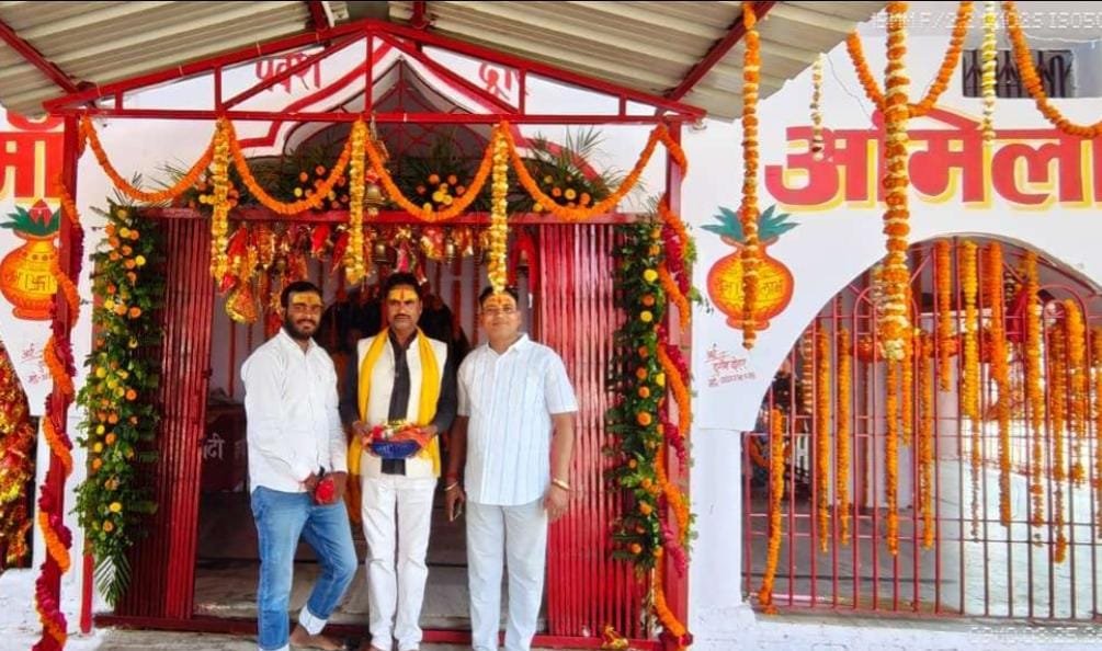 मन्नत पूर्ण होने पर मां अमिला का भव्य रूप से सजाया मंदिर